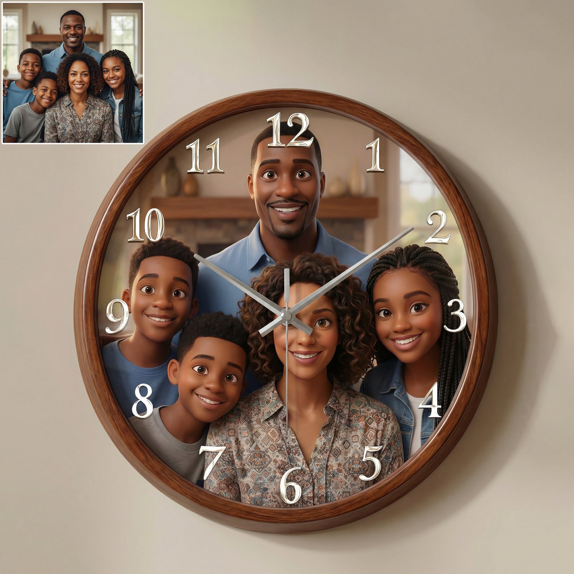 Pixar-Style Personalized Photo Clock - Gift For Family, Couple, Wife, Husband, Boyfriend, Girlfriend, Pet